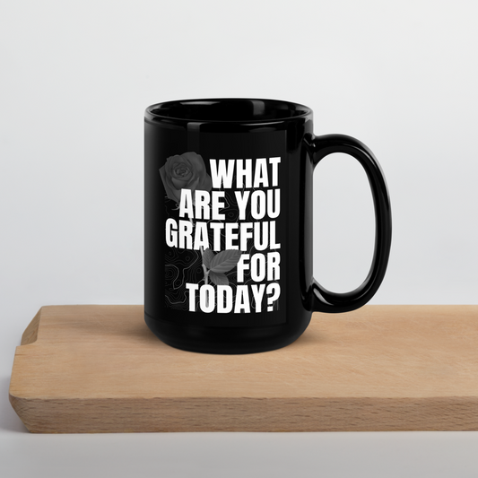 What Are You Grateful For Today? Black Glossy Mug